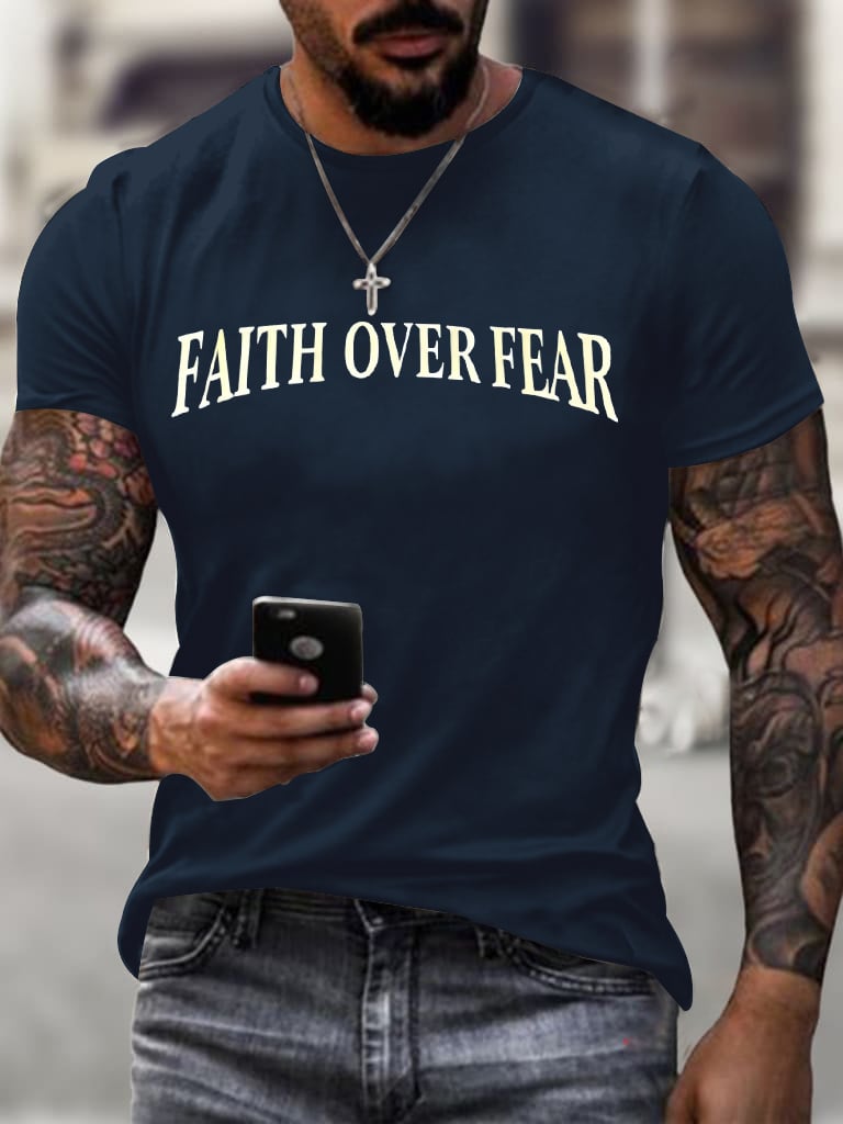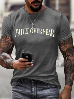 Men's Faith Over Fear Printed Casual T-Shirt