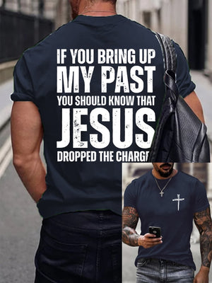 Men's If You Bring Up My Past You Should Know Jesus Dropped The Charges Printed Casual T-shirt