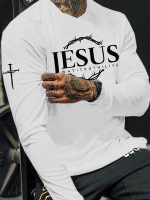 Men's Jesus The Way The Truth The Life Print Long Sleeve T-shirt