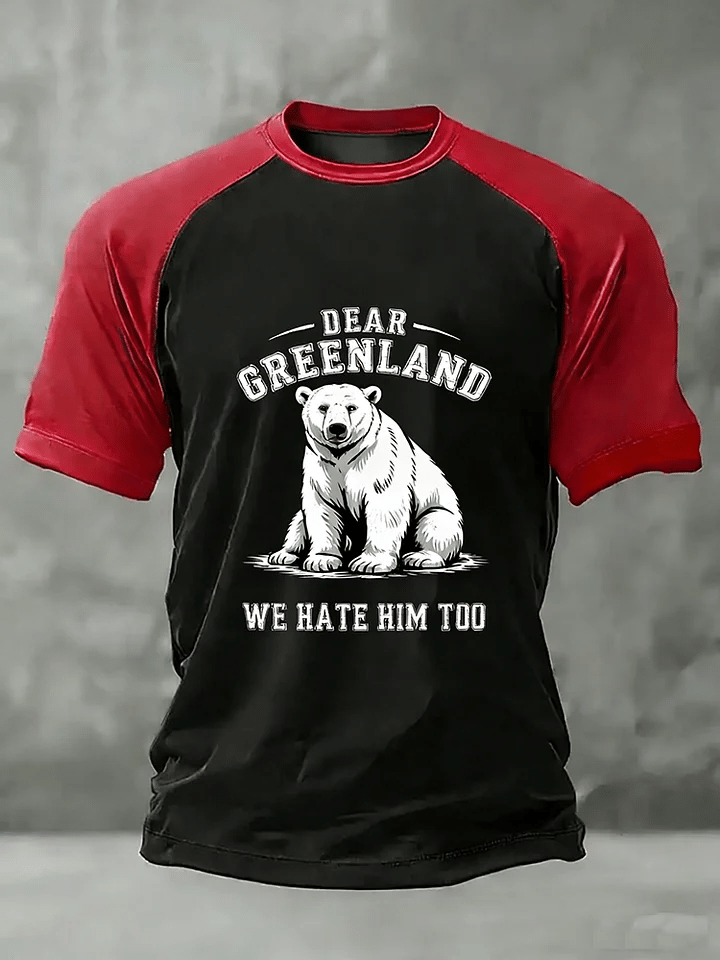 Men's Retro Dear Greenland We Hate Him Too Print Raglan Sleeve T-Shirt