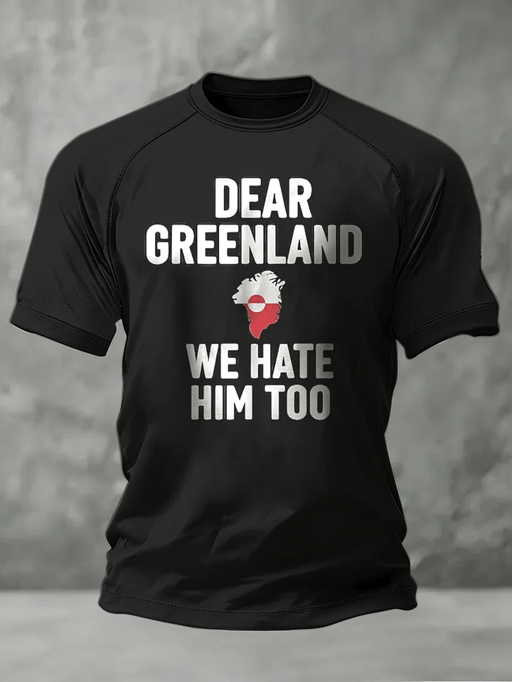 Men's Retro Dear Greenland We Hate Him Too Print Raglan Sleeve T-Shirt