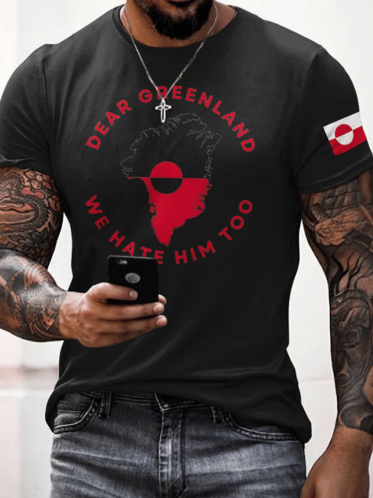 Men's Retro Dear Greenland We Hate Him Too Printed Top