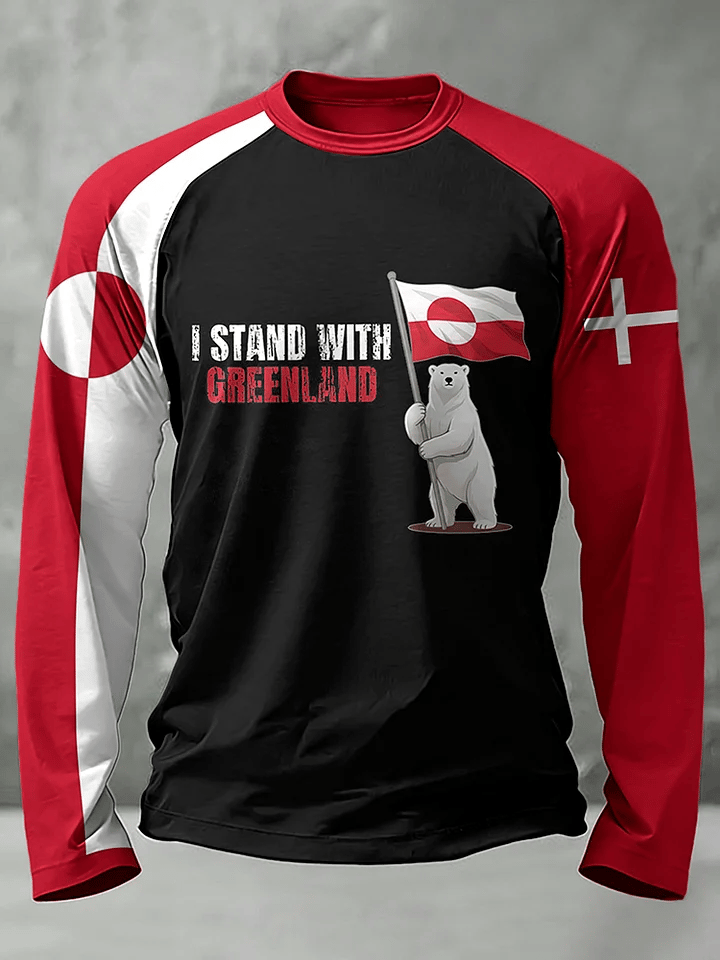 Men's Retro I Stand With Greenland Print T-Shirt