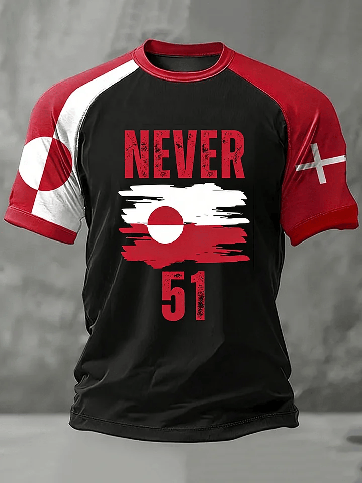 Men's Retro Never 51 Greenland Is Not For Sale Print Raglan Sleeve T-Shirt