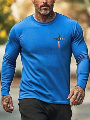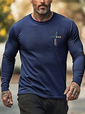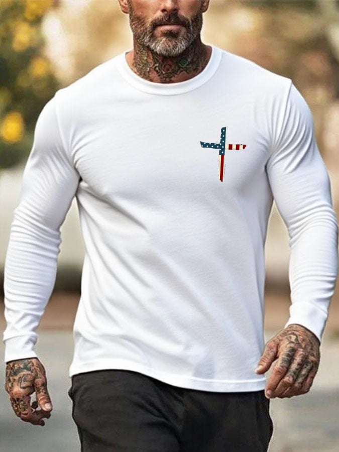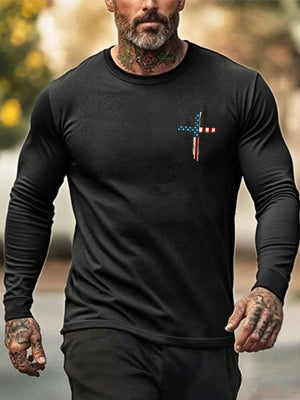 Men's Stand For The Flag Kneel For The Cross Print T-Shirt