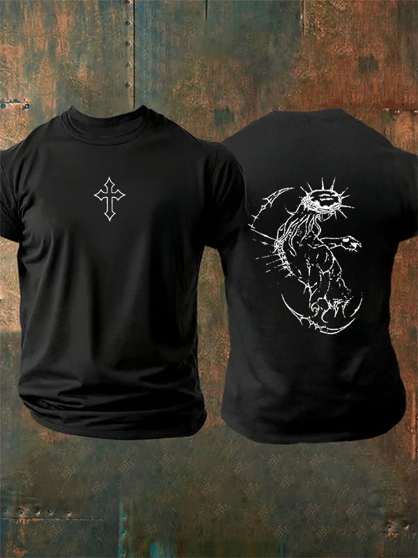 Unisex Fearless Cross Print Acid Washed T-shirt