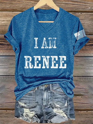 V-Neck Retro I Am Renee Print T-Shirt