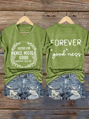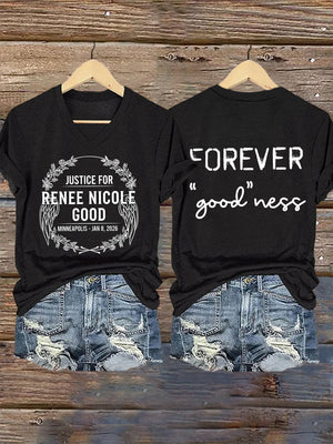 V-Neck Retro Justice For Renee Nicole Good Minneapolis-Jan 8, 2026 Forever "Good"Ness Print T-Shirt