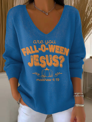 Women's Are You Fall-O-Ween Jesus Print V Neck Sweater