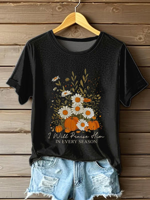 Women's Casual Autumn Faith Graphic Print Round Neck Short Sleeve T-Shirt