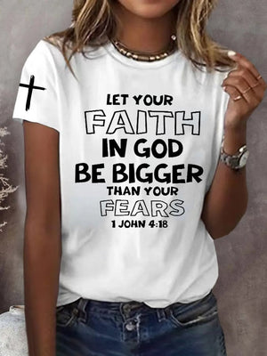 Women'S Casual LET YOUR FAITH IN GOD BE BIGGER THAN YOUR FEARS 1 JOHN 4:18 Print Short Sleeve T-Shirt