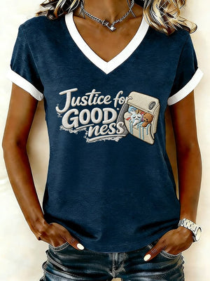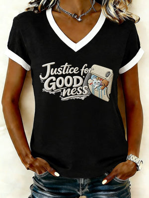 Women's Justice For GOODness Print V Neck T-shirt
