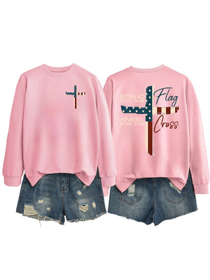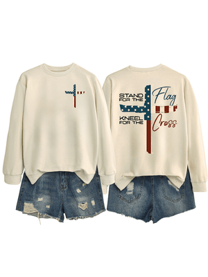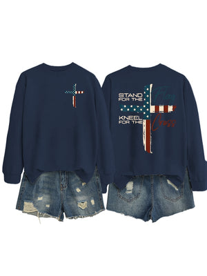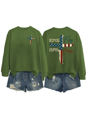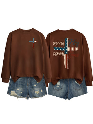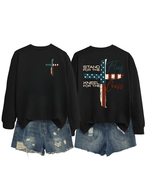 Women's Stand For The Flag Kneel For The Cross Print Sweatshirt